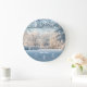 Baby it's cold outside! So why not stay inside where it's warm and cozy? Tell the time in style with this beautiful clock featuring a magical winter wonderland snow panorama! A frozen lake, trees covered in snow, and the sunshine lighting it all. This clock will look awesome and brighten up any room in your home! Also a great (housewarming) gift idea!