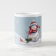 Pale blue winter landscape with a cheerful snowman and his friends - large mug