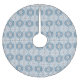 Wintry blue and grey tree skirt with a unique ogee pattern made up of snowflakes, swirls, circles and a vintage inspired ornament.
