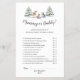 This winter woodland animals baby shower Mummy or Daddy game is perfect for a gender neutral woodland baby shower or sprinkle. The classic rustic design features a wintery scene with pine trees and woodland baby animals. The calligraphy is dark grey in color, with contrasting simple typography, on a basic white background. Personalize the game with the name of the expectant mother and the date. QSD118