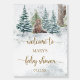 This winter-themed baby shower invitation is a charming blend of snowy landscapes, adorable bear cubs, mama bear, and festive evergreen trees.