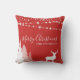 Celebrate the holidays with this elegant Winter Woodland Deer throw pillow, featuring a custom monogram. The rich red background is adorned with a serene white woodland scene, complete with a majestic deer and twinkling stars. Personalize it with your family name to create a festive and sophisticated touch to your home decor. Perfect for adding a personalized and cozy element to your holiday decorations.