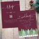 Winter Woodland Burgundy Wedding Invitation with Watercolor Fir Trees, Script Typography & QR Code RSVP