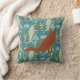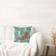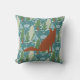 A colorful winter woods with red fox patterned throw pillow with a pretty teal blue sky, snowflakes, clouds, evergreen trees covered with snow, and little red foxes! The front and back both have one larger silhouette red fox!