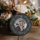 A perfect gift for newlyweds, this elegant Christmas ornament features front and back photos encircled by a wreath of dark green leaves and white berries. "Our first Christmas as Mr. & Mrs." curves over the top of each photo, with the year beneath. Customize with a wedding photo on each side to create a unique keepsake of your first married Christmas.