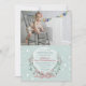 A delicate wreath of berries, foliage and flowers tied with a bow against a light sea-foam, snowy background. Pair it with your photo for a lovely birthday invitation.