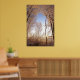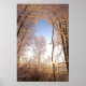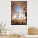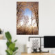 A hole in a snowcovered wood show a blue sky during a cold winter in Belgium