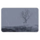 A cold and windy 3D landscape in winter, created in Vue. On top of a hill white with ice and snow, against a stormy grey sky with rain or sleet falling steadily, a lone, bare maple tree stands with a wooden bench under it.