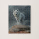 On a late autumn day, underneath a moody dark sky, your hike through the golden grasses in the plains of the American west has been interrupted. Like a ghost, a huge white wolf has appeared out of nowhere and stands on pile of dark rocks. This predator of the North American wilderness gazes at you with a hungry look. Perhaps he's hunting or, maybe, he's just a spirit here to tell you that soon the fall will give way to winter.