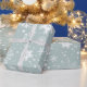 A perfect non-Christmas or Winter themed wrapping paper featuring peaceful winters snowflake pattern in light teal and white.