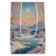 Surprisingly: Ice doesn't always freeze solid! Tiny air bubbles and impurities can create stunning patterns and textures within the frozen surface. This serene design captures the peaceful beauty of a winter landscape, featuring a tranquil lake surrounded by snow-covered trees and majestic mountains. The setting sun casts a warm glow over the scene, creating a breathtaking vista that evokes a sense of calm and wonder. Perfect for adding a touch of winter magic to any project.