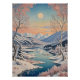 Surprisingly: Ice doesn't always freeze solid! Tiny air bubbles and impurities can create stunning patterns and textures within the frozen surface. This serene design captures the peaceful beauty of a winter landscape, featuring a tranquil lake surrounded by snow-covered trees and majestic mountains. The setting sun casts a warm glow over the scene, creating a breathtaking vista that evokes a sense of calm and wonder. Perfect for adding a touch of winter magic to any project.