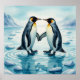 This whimsical poster features a sweet penguin couple sharing a special moment together holding hands. Finished in an oil paint print.