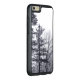 Keep your iPhone 6/6s Plus safe with a protective OtterBox Case featuring a stylish black and white photograph of snow-covered trees. The treetops form a strong diagonal with the tallest tree starting at the upper left corner of the image and the shortest tree at the bottom half of the right edge. The two trees on the left are evergreens while the rest are leafless deciduous trees; all are covered with snow. The sky above them is white.
