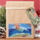 The painting shows a glimmering orange surfing angel on a blue ocean with a sparkling sun. Seafoam washes up on the sand surrounding the words "Wipe Out Cancer". There is a pink seashell on the beach. The painting was rendered in acrylic and sprinkled with glitter for texture and shine. The image was converted into cards that the team could use for the luminaries. Make custom decal stickers to show cancer awareness and support!