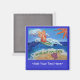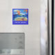 The painting was made for a group fundraising for the American Cancer Society's "Relay for Life". The booth theme was luau of "Wipe Out Cancer". The painting shows a glimmering orange surfing angel on a blue ocean with a sparkling sun. Sea foam washes up on the sand surrounding the words "Wipe Out Cancer". There is a pink sea shell on the beach. The painting was rendered in acrylic and sprinkled with glitter for texture and shine. The image was converted into cards that the team could use for the luminarias. Personalize this magnet with your own message or images using the "Customize It" button!