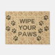 Wipe Your Paws. Funny dog quote design. Humorous dog saying for dog owners. In bold brown text with paw prints.