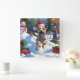 Wire Fox Terrier Running Snow with Christmas Hat Square Wall Clock