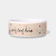 This is a heavy, durable bowl decorated with Tibbies of many colors, the perfect size for hungry/thirsty Tibs. The design is interesting and printing clear.