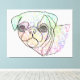 A wire pug on a multicolor background.