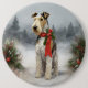 Wirefox Terrier Dog in Snow Christmas Button