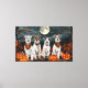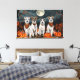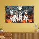 Unleash the spooky spirit with this eerie Halloween design featuring a pack of dogs under a dark, moonlit sky, surrounded by flying bats and glowing pumpkins. Perfect for those who love a touch of frightful fun with their furry friends!