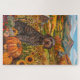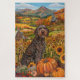 Celebrate the beauty of fall with this vibrant painting of a dog sitting beside a bountiful Thanksgiving harvest. The rich autumn colors of pumpkins, sunflowers, and rustic farmhouse scenery create a warm and inviting atmosphere, perfect for any dog lover's seasonal décor.