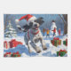 A spirited Wirehaired Pointing Griffon runs joyfully through the snowy winter scene, wearing a festive red Christmas hat. This lively design highlights the breed’s shaggy coat, hunting heritage, and affectionate personality while capturing the warmth and joy of the holiday season. A heartwarming winter moment full of festive charm.