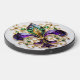 Wireless charger adorned with a purple, green and gold, jewel toned, fleur de lis.