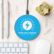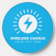 Wireless phone charger with electric bolt logo. Electric power voltage logo charger. Custom template design. Modern charger bolt spark icon with business name, quote or slogan. Blue or custom color.