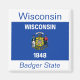 An authentic fine quality image of the flag of Wisconsin set between the state name and nickname over a flag-color background.