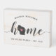 Show some home state pride with this cute wood box sign featuring "home" in black calligraphy script lettering with a silhouette map of the state of Wisconsin standing in for the letter "O." A pink heart illustration inside the state map completes the design; you can change the position of the heart to your home city by opening the design tool and dragging the heart shape to your favorite spot. Personalize with your home city, family name and year established to create a perfect finishing touch for your entryway, or a memorable housewarming gift.