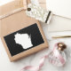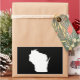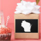 The shape of the state of Wisconsin in white on a black background. You can change the background color and add a text message in a bright font to personalize a custom souvenir.