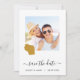 Let guests know to save the date for your wedding with this pretty minimalist photo card with a map outline of the location of your event.