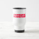 Travel Mug shown with Red text: Wisconsin. For all you fans out there take your support everywhere.
