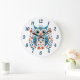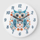 Wise Blue Owl Scandinavian Folk Art Large Clock