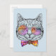 This design features a cute, cool cat wearing rainbow glasses and a polka dotted bow tie.
