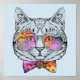 This design features a cute, cool cat wearing rainbow glasses and a polka dotted bow tie.