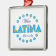 Wise Latina Ornament in blue. The text reads “Wise Latina”, and below is a space for your name or other text, customize in our easy to use template. The design is surrounded by blue flowers. Makes a great gift for a Latina to show her Latina Pride. These pretty ornaments can also be used as necklace pendants, or as door hangers, fan pulls, light pulls, blind pulls, or shade pulls, or even hang from your rear view mirror. Cute to hang on the door of a young Latina. Created in honour of Justice Sonia Sotomayor, the first Latina Supreme Court Justice of the USA. You can change the background color if you'd like, just go to customize. This pretty Latino Pride design is available on many other fun and attractive products. Want this or a similar design on another item? Browse my Sensato store. This design is available in blue, purple, or pink.