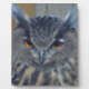 The predatory bird of wisdom stares intently at his prey before the strike.