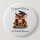 Cute wise Owl Know it All Graduation button Congratulate your 2025 grad with a cute wise owl in graduate mortarboard cap and tassel standing on a stack of books