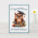 Cute wise Owl Know it All Graduation Card. Congratulate your 2025 grad with a cute wise owl in graduate mortarboard cap and tassel standing on a stack of books.