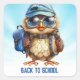 Wise Owl with Blue backpack, hats and an eyeglass, Square Sticker