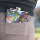 Well made flask, a little better than I had expected. Flask came in clear plastic box which gave it a nice presentation when I took it out of the zazzle packaging. Image is not printed on flask but on sticker. Don't know how this will hold up I haven't used it yet. This would make a Great gift! I plan to purchase more for friends! Cheers. I thought a little brighter than computer. Very crisp, writing wasn't