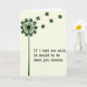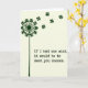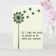 This card features a dark forest-green dandelion set against a creamy off-white background, with the bloom formed from tiny four-leaf clovers 💚. A slim stem rises on the left, and several clover “seeds” float up and to the right, as if a soft breeze is carrying them toward someone just out of view ☘️. The drifting clovers create a gentle sense of reaching and returning, like two people drawn together a little too late but still moving in the same direction. In the lower right area, the message reads, “If I had one wish, it would be to meet you sooner.” The lettering is also dark green and sits neatly beneath the open space created by the floating clovers, keeping the layout balanced. The words feel like a quiet note meant for one person, matching the tender motion of the clovers as they spread across the page. The final detail is the cluster of clover seeds thinning as they travel toward the upper right corner.