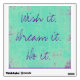 Wish it Dream it Wall Decal--distressed aqua colored wall decal with purple accent writing and shades. This inspirational and motivational wall quote decal reads, "Wish it, Dream it, Do it" and is a great way to spice up any room or encourage yourself or someone else everyday.
