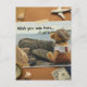 This postcard captures a tender moment of quiet wandering—a little teddy bear perched by the water, gazing out toward distant boats beneath a soft, clouded sky. Surrounded by travel‑themed keepsakes pinned to a corkboard, the scene carries a gentle sense of longing and affection. A heartfelt way to say you’re missed, no matter how far the journey takes you.