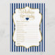 Elegant navy blue and gold wishes for baby, this boy baby shower game has navy blue and white stripes with gold faux glitter accent and gold text.