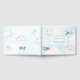 Fun and whimsical guestbook design for an aviation themed baby shower / birthday / Baptism party, featuring a blue sky with fluffy white clouds and cute toy airplanes in tones of blue and mint.