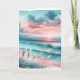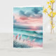Birthday card that can be personalized. Pretty beach scene in pastel blue and pink. Ocean waves on the sandy shore with delicate ocean weeds blowing in the breeze on a cloudy day as the sun sets.
